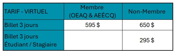 Dans un contexte en constante évolution, l’OEAQ et l’AEÉCQ vous invitent à faire partie de cette plateforme de collaboration essentielle pour bâtir l’avenir de nos pratiques. Venez échanger, apprendre et contribuer à l’enrichissement de votre profession, à l’échelle du Québec.
